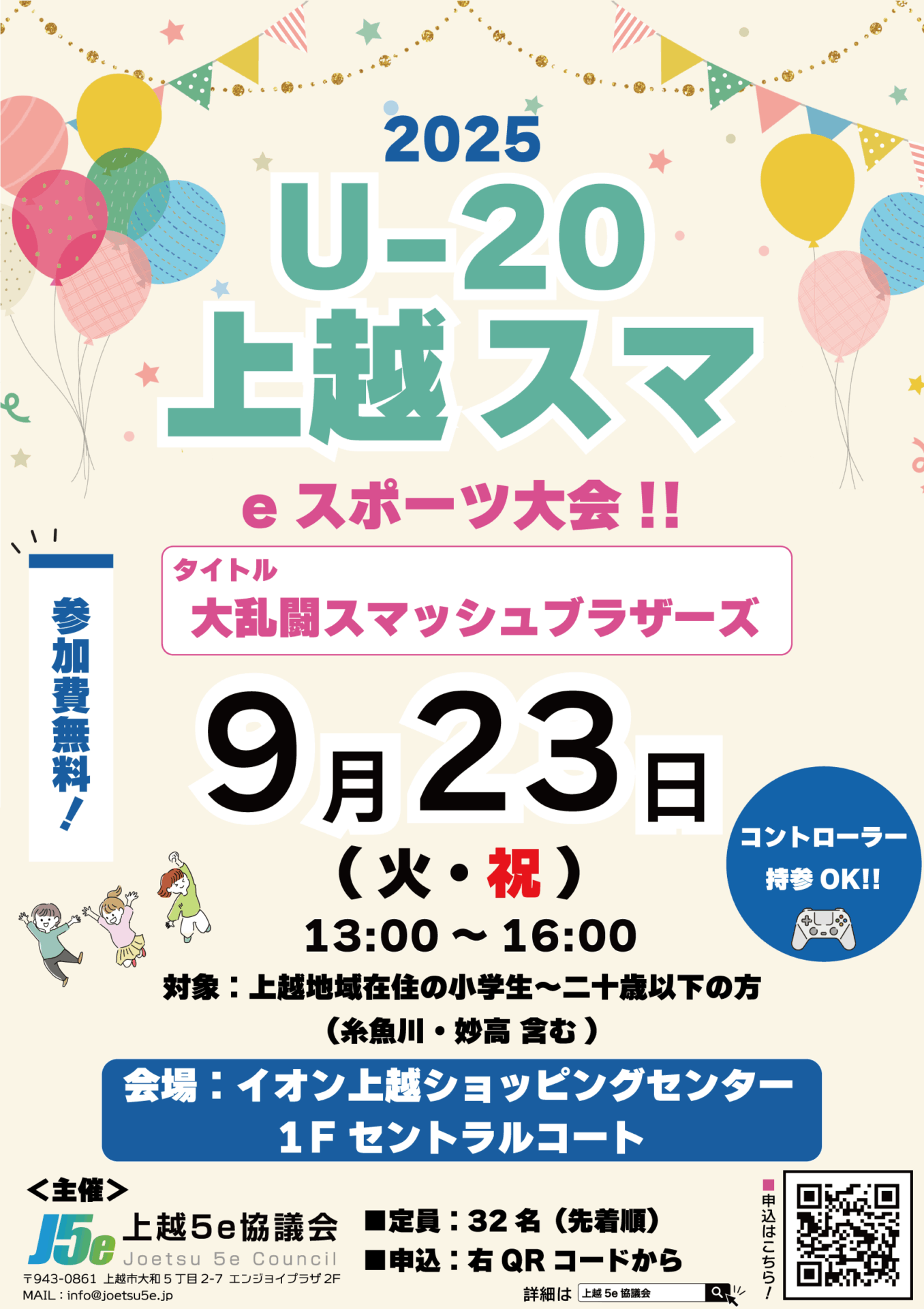 「2025 U-20上越スマ」開催のお知らせ~大乱闘スマッシュブラザーズ~